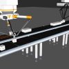 – Cobot 6 trục với tool hút sản phẩm, hút sản phẩm xếp theo layout yêu cầu vào pallet trống 2 bên