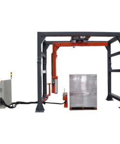 – Băng tải đầu ra, chuyển pallet hàng đã quấn màng co ra vị trí xe forklift lấy hàng